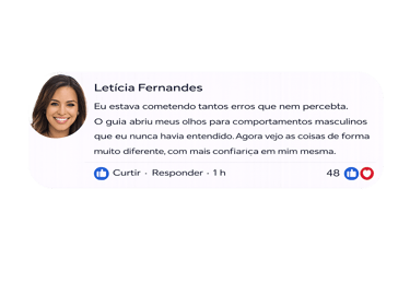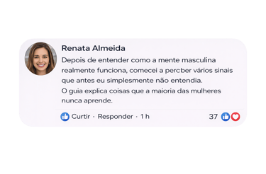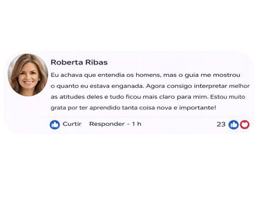 ✅ Passe a enxergar comportamentos masculinos com mais clareza, entendendo sinais que antes pareciam confusos.