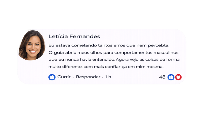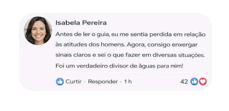 ✅ Passe a enxergar comportamentos masculinos com mais clareza, entendendo sinais que antes pareciam confusos.